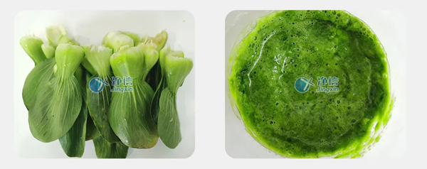 比如組織結(jié)構(gòu)較硬, 含水量豐富的樣品,青菜、黃瓜、茄子等,下面以青菜為例,觀察刀式研磨儀的處理效果。