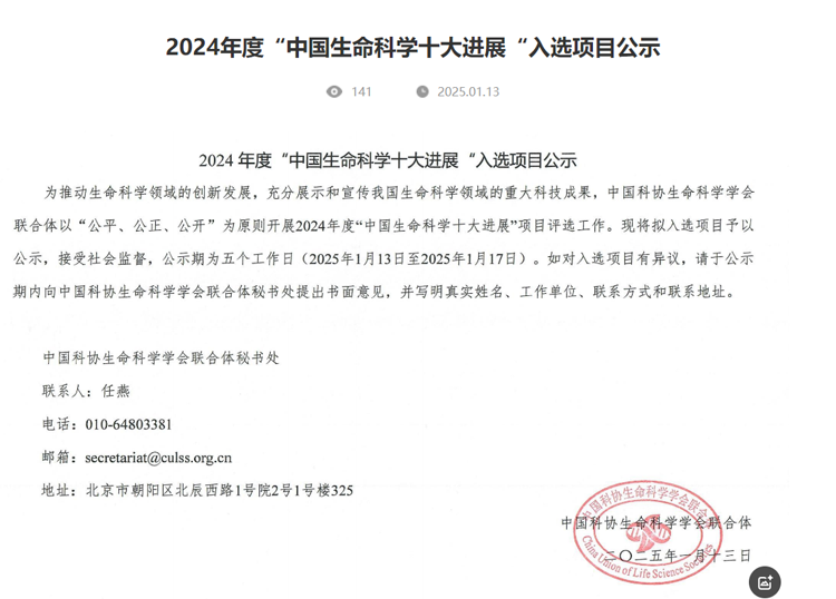 重磅|凈信多樣品組織研磨儀助力科學(xué)家獲得2024年度中國生命科學(xué)十大進(jìn)展”