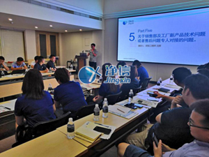 凈信研發(fā)部工程師沈工也在會上就銷售部及工廠新產(chǎn)品技術(shù)問題以及售后專人對接問題進行了講解和討論。公司在研發(fā)新產(chǎn)品的同時也非常重視產(chǎn)品使用當中所出現(xiàn)的技術(shù)問題和售后問題。凈信目前在全國擁有十幾個辦事處,對于售后這一塊,我們也是非常有信心的。能夠及時有效的幫客戶解決問題。