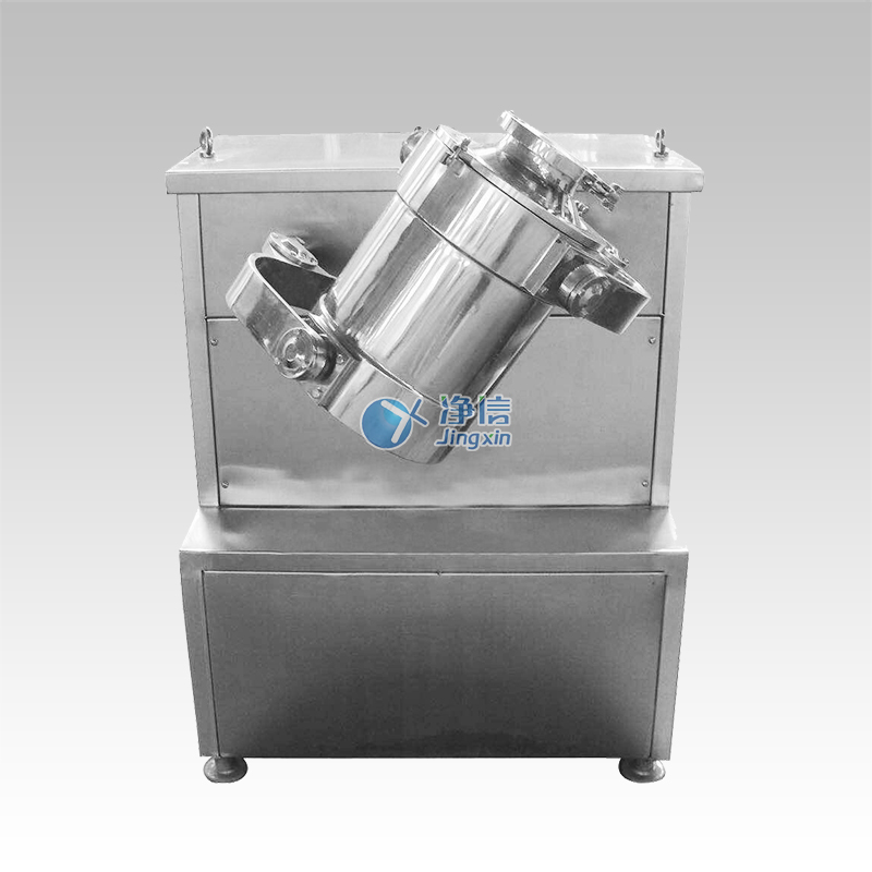 裝料的筒體在主動軸的帶動下,將不同比重的物料做周而復(fù)始的平移轉(zhuǎn)動和翻滾等復(fù)合運(yùn)動,促使物料沿著筒體做環(huán)向、徑向、和軸向的三向復(fù)合運(yùn)動,從而實(shí)現(xiàn)多種物料的相互流動、擴(kuò)散、積聚、摻雜,達(dá)到均勻混合的目的。整個過程確保無塵化進(jìn)行,方便清洗。