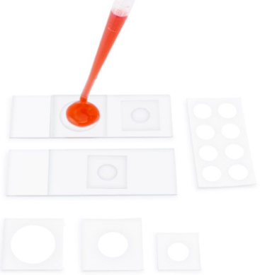 成像墊片是超薄的具有粘性的,撕下來后就可以粘附在蓋玻片或者顯微鏡載玻片上固定樣本,但是避免了樣本被擠壓。墊片的材質(zhì)和厚度可以根據(jù)實際應(yīng)用而生產(chǎn)。