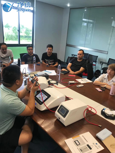 凈信資深工程師沈工在講解儀器實際操作問題
